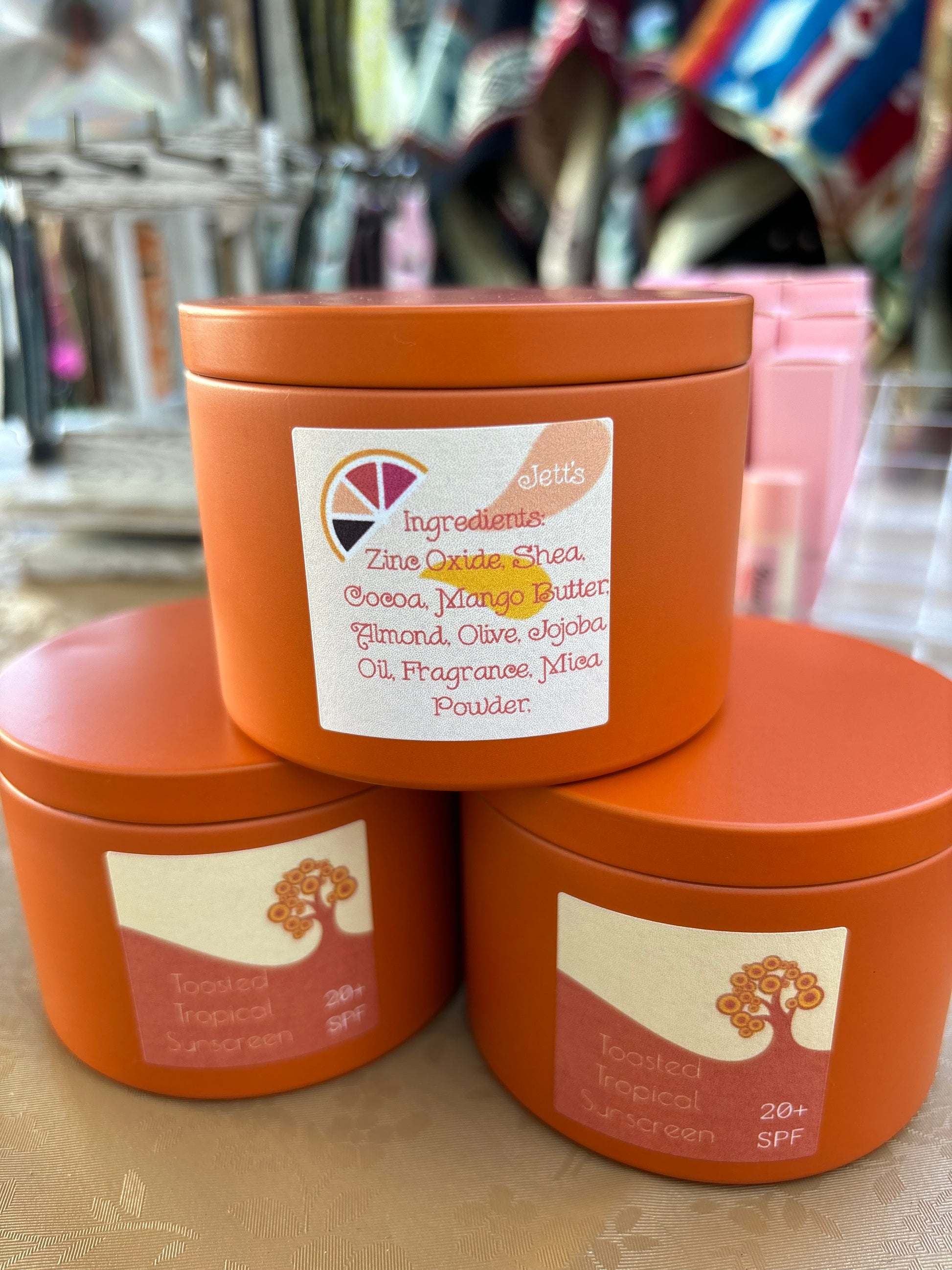Ingredients: Zinc Oxide, Shea Butter, Cocoa Butter, Mango Butter, Olive Oil, Jojoba Oil, Avocado Oil, Almond Oil, Vitamin E, Mica Powder